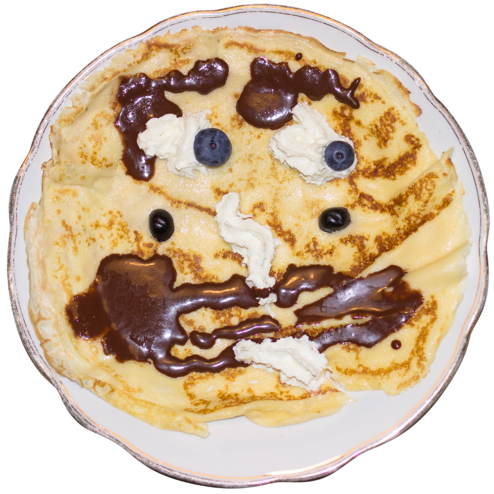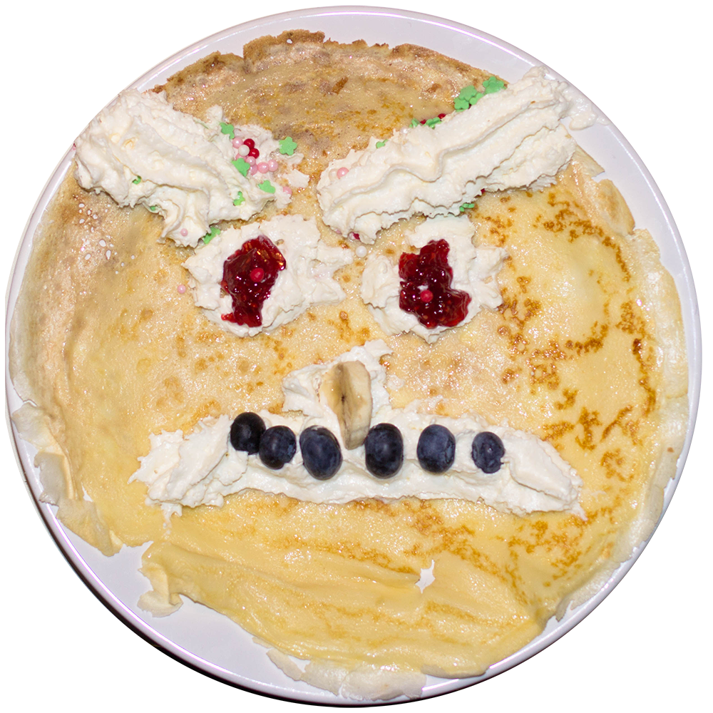 K: Det var ett väldigt kul sätt att äta pannkakor på, man äter alltid pannkakor lite för snabbt annars. (…) Vad hade hänt om vi gjort semlor till ansikten?